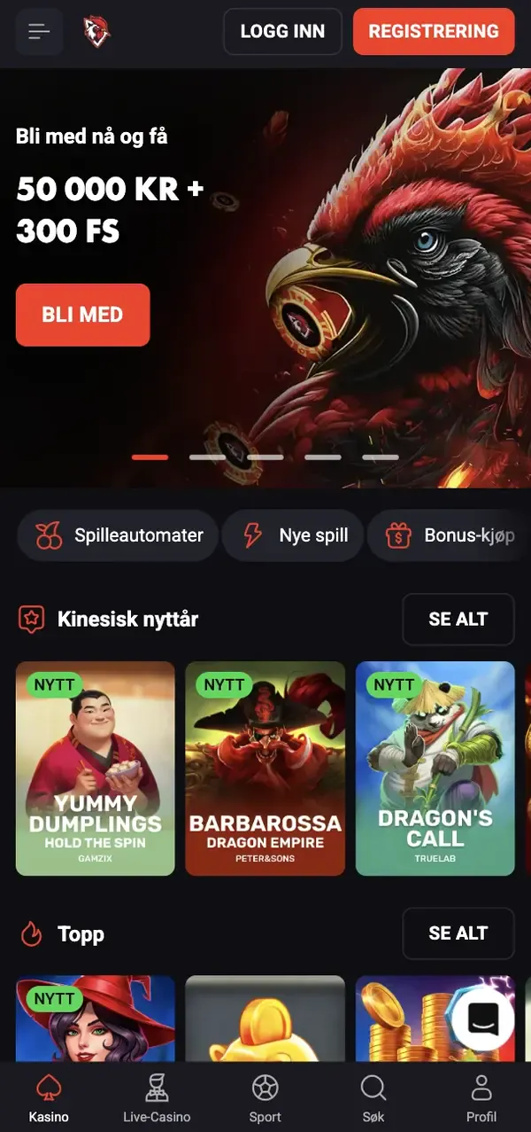 Vi bygde mobilplattformen vÄr for Ä fÞles som et komplett kasino i lomma, ikke en begrenset versjon av desktop-siden. NÄr du bruker RoosterBetCasino pÄ telefon, kan du bla gjennom spilleautomater, live dealer-bord og sportsbook-markeder med samme kontosaldo og de samme reglene for bonuslommebok. Spillkatalogen vÄr inkluderer Spilleautomater, Bordspill, Live Casino, Jackpottspill, Sportsbook, Instant Win og Crash Games, med innhold fra Pragmatic Play, Evolution, Play'n GO, NetEnt, BGaming, Nolimit City, Betsoft, Yggdrasil, Wazdan og Spinomenal.